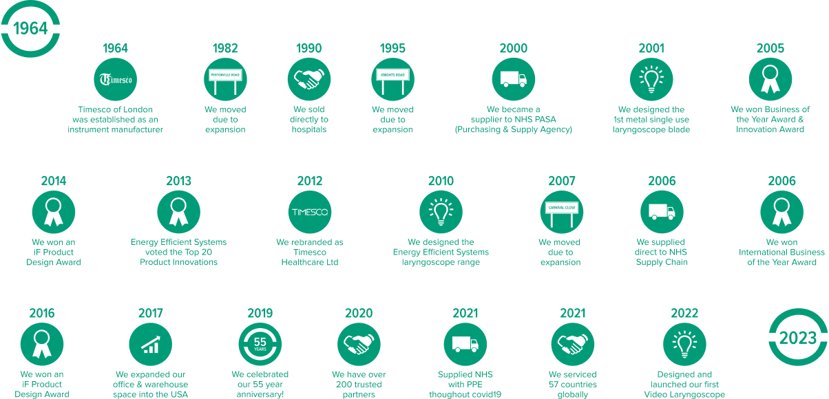 In 1964, Capt. M.F. Bhatti founded Timesco Healthcare Ltd, previously known as Timesco of London. Initially, the company produced surgical instruments for leading English brands. However, as the company expanded, it established its own direct sales teams and began supplying products under its own brand names. Timesco Healthcare eventually expanded into Anaesthesia, General Medical and Podiatry products.