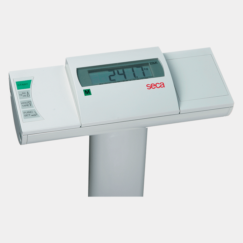The Seca 704 wireless electronic column scales are suitable for weighing small children to obese patients. The Seca 704 can do it all, especially when it comes to finding out BMI and height (with the use of the optional Seca 220 measuring rod). Other advantages include the high load bearing capacity of up to 300kg for heavier patients, the large and flat platform and time-saving functions pre-TARE, HOLD, auto-HOLD and mother/child function.